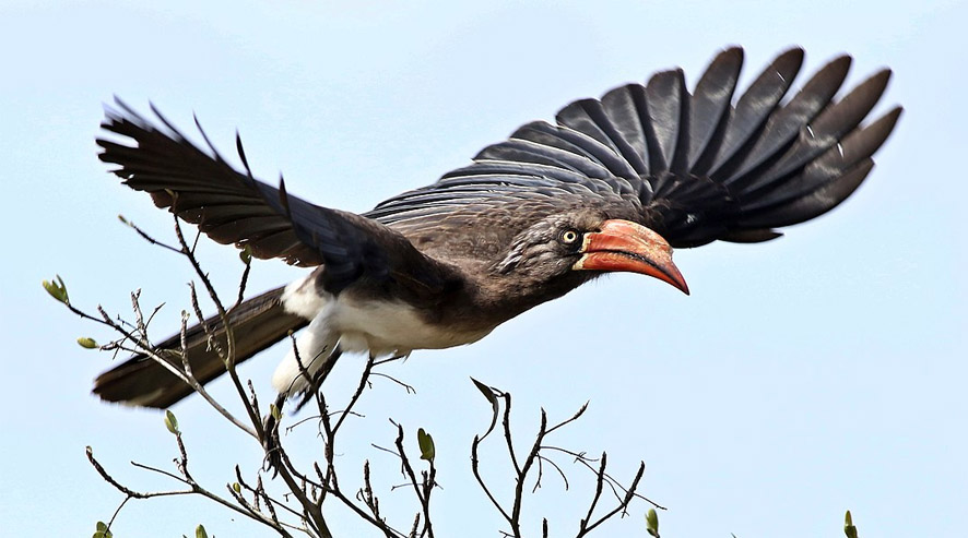 Het vrouwtje is kleiner dan het mannetje, met ook een kleinere helm op de snavel, die minder ontwikkeld is.