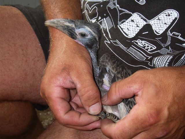 De oogring en het kale stukje huid op de keel zijn donkergrijs van kleur.