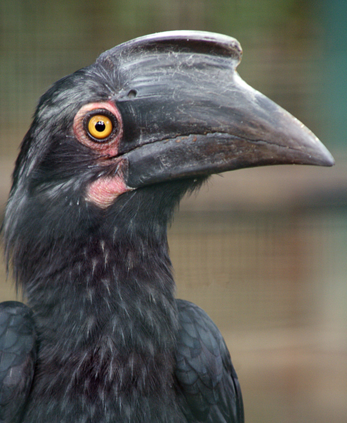 De snavel en de helm zijn lichtgeel van kleur met een zwart randje bij de aanhechting van de snavel.