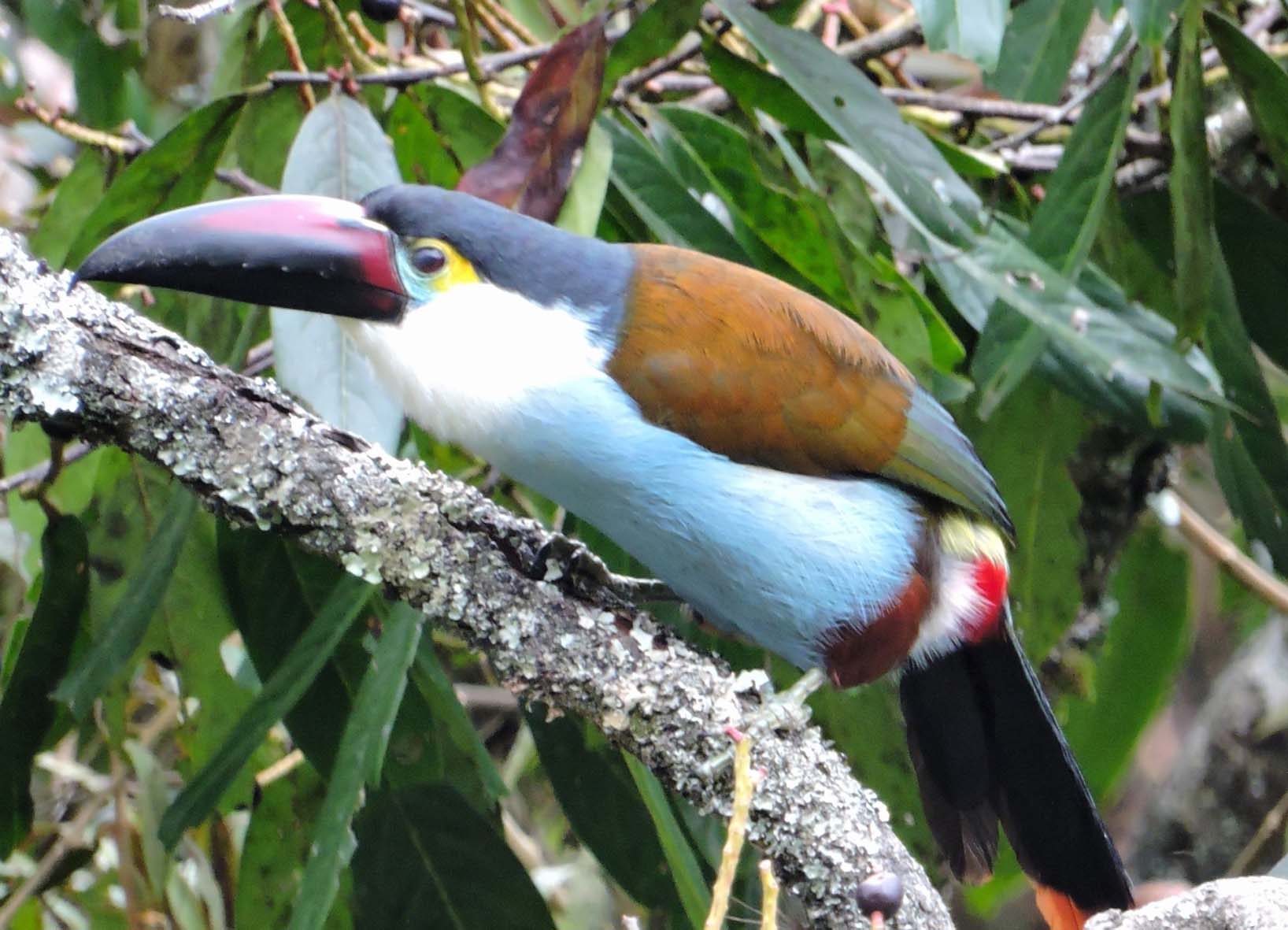 De eerste ondersoort onderscheidt zich door een rode snavelbasis en wigvormige rode vlekken op de zijkanten van de bovensnavel. De vogels houden zich op in de dichte wouden, op hoogten variërend van 1800 3000 m. Daar de plaat vervaardigd werd naar balgen en de huid meestal verkleurd is, ontbreken rondom het oog de juiste kleuren; voor het oog is de naakte huid zacht blauw en achter het oog geel, terwijl de iris zelf diep rood is.