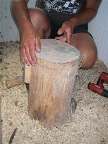 Het nestblok dat ik mee gekregen had van de vorige eigenaar was een uitgeholde boomstam met een vlieggat van 10 cm hoog en 6 cm breed.