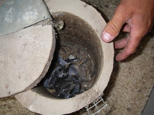 Toen het vrouwtje voor het eerst naar buiten kwam was er voor mij de mogelijkheid om het nestblok te inspecteren.
