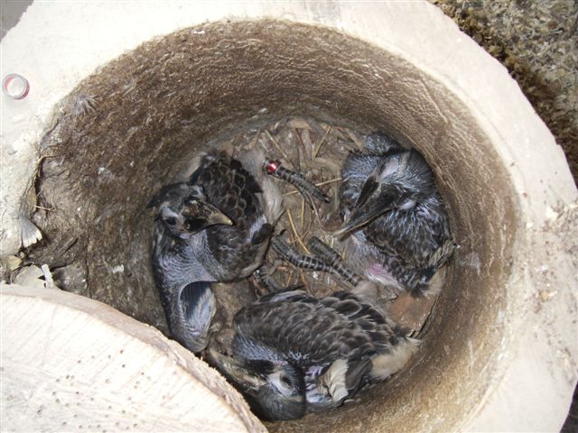 Dan de ontlading; 3 jongen maar liefst en nagenoeg even groot en al mooi in de veren op de staartveren na natuurlijk.